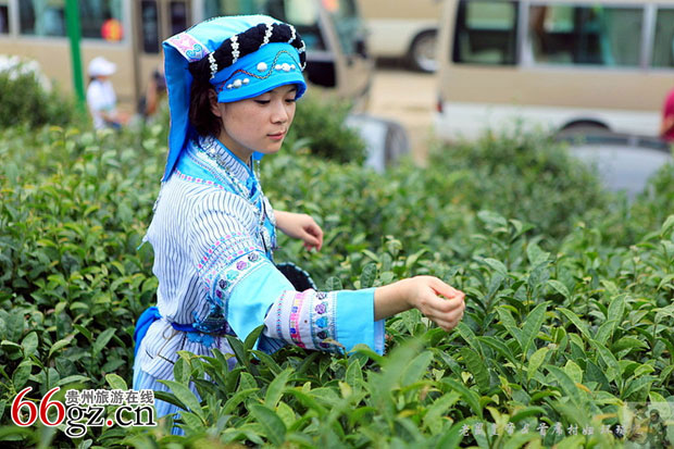 从贵阳开车去开阳大概需要1个半小时,到达南江大峡谷梯子岩度假村先办理入住,简单用过餐之后直奔十里画廊之云山茶海——富硒茶园。据说这里的水土不同于别处,富含人体所需之硒元素,且又绝对不超标,因此出产的茶叶、大米、蜂蜜等备受推崇。富硒茶没有喝出特殊的香味来,到是被一身民族服装的姑娘们深深吸引。她们年华正好,淡雅的服装将她们清新的气质衬托得极好,看她们采茶的样子真是赏心悦目。