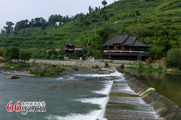 也许是因了这样的原因吧,继青定阁国际乡间会所在水头寨落成开业后,2012年,雅丽斋文化传播公司又在水头寨青龙河两岸,按照当地民居建筑特色,开发建设了占地一千多亩的旅游休闲度假区。该度假区刚落成开业不久,省内和全国各地游客便纷纷慕名来到这里,感受浓浓的布依族风情文化,体验布依族舌尖上的特色饮食文化,欣赏布依族的建筑文化、农耕文化。在我们抵达度假区时,虽然已近下午,但停车场里的私家车还是停得满满的,道路上人来人往,凉棚下的餐桌边坐满了游客,我们也在凉棚下找了一张桌子坐了下来,不多久,服务员就端上来一桌丰盛的布依族美食,让我们真真享受了一回舌尖上的布依族餐食美味。
