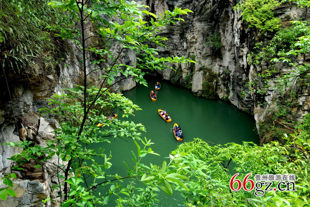 天河潭原名天生桥,位于贵阳市南郊花溪河上游车田河段的石板镇芦荻村旁。距贵阳24公里,距花溪镇13公里,距磊庄机场6公里。天河潭景区西起花溪区湖潮乡车田寨,东抵花溪水库鸡公岛,全长9.5公里,总面积15平方公里。