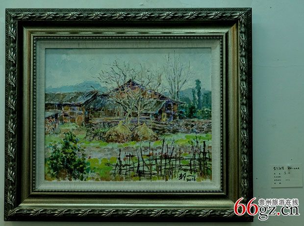 第一个走进刘邦一先生的油画展厅,从左至右一幅一幅逐一观看了过去,浏览一遍以后,又回过头来从右至左一幅一幅看了过来,总觉得有些画面是那样的熟悉,好像那就是我的家乡——那弯弯曲曲的相间小路,那一个一个的稻草垛,那潺潺流淌的小溪,那并不很大的鱼塘,那并不年轻的农夫的背影,那站立在路旁的黄牛,那掩映在绿树丛中的木屋……冥冥中把握我带到了几十年前的童年时代……