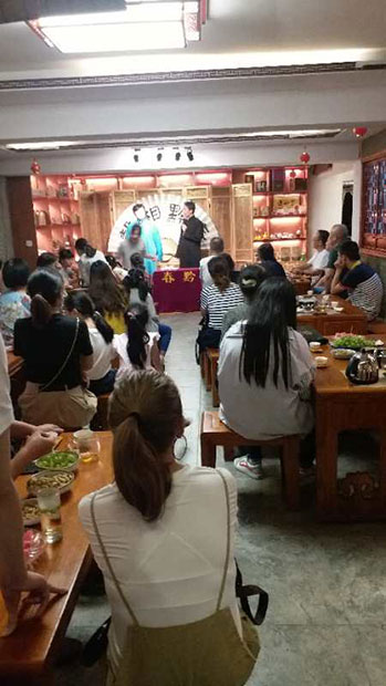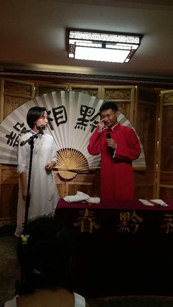 8月5日晚上,在曦夕茶书院大厅,由春黔社表演的相声别俱一格,春黔社演员中有贵州民族大学的女学生叫叶秀仙......