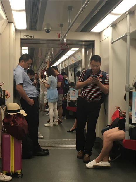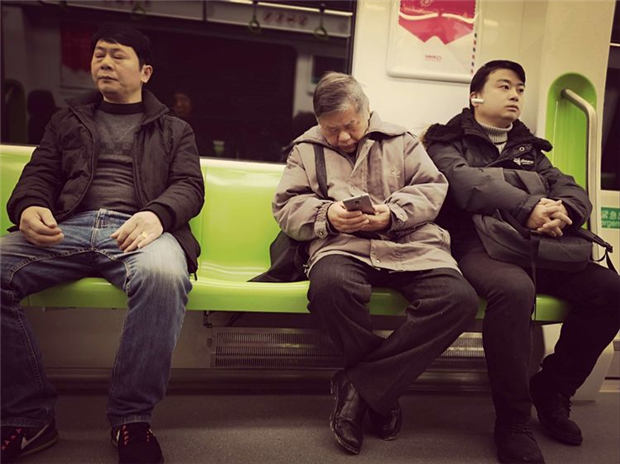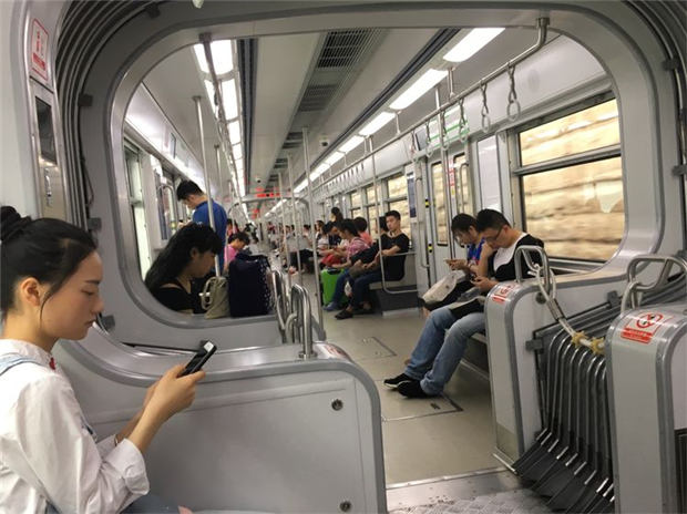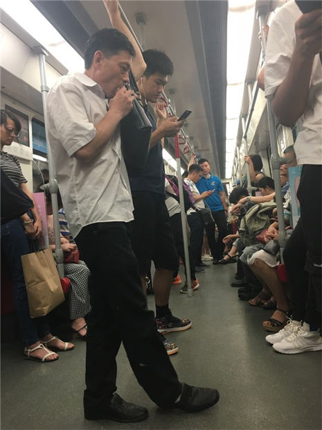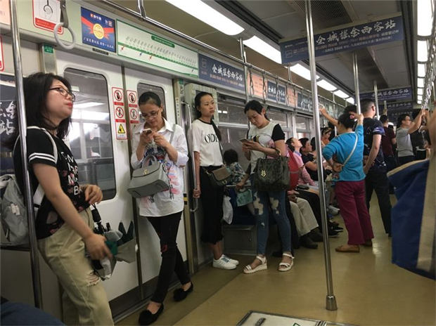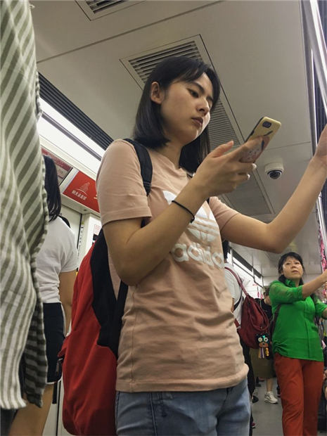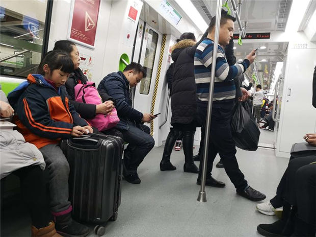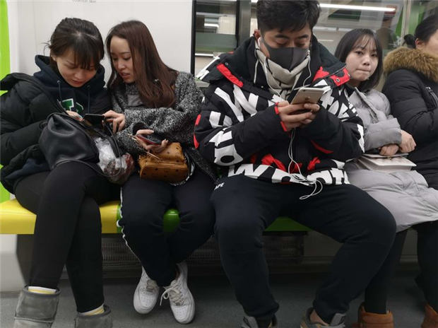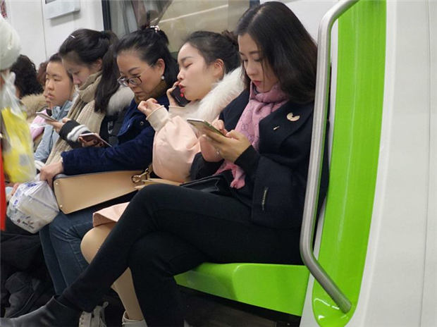 清晨赶早班车的上班族们都在抓紧时间刷屏。