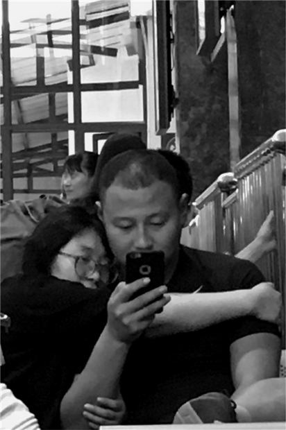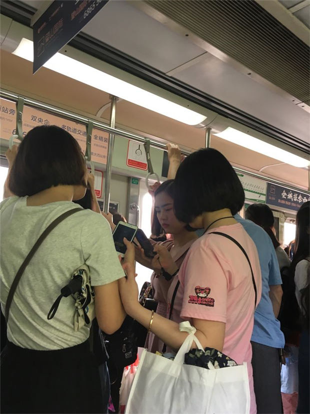 从各个不同的地方赶到地铁上约会的闺蜜们聚在一起也还是各玩各的手机,刷着微信。