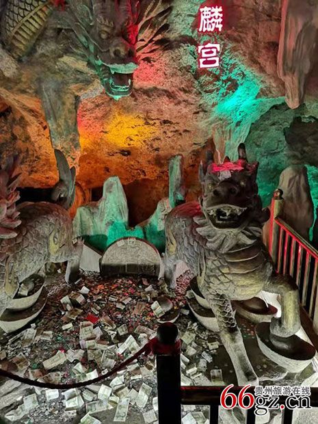麒麟洞原名唐山洞,因洞内有钟乳石酷似麒麟,又称麒麟洞。素有“人间寻胜唯斯地、洞里乾坤别有天”的美誉。早在1530年(明嘉靖九年)洞前就建有一庙庵、 名白衣庵、当年镇守贵州的太监杨金曾在此赋诗咏景。
