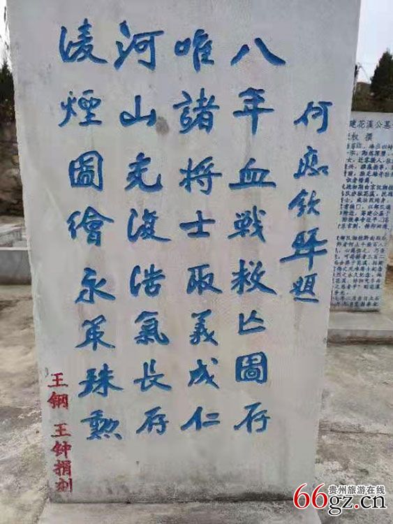 这里有蒋中正 何应钦 顾祝同 白崇禧 陈诚等数十块碑文及贵州省红十字基金会的《抗日英雄民族脊梁 功昭日月国人共仰》等纪念状,让人们在缅怀先烈时感动不己……