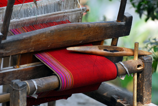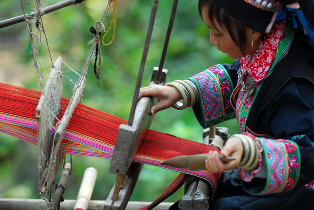 拍摄完织布,同车的几个影友便分散开去,各自寻找自己的兴趣点。在寨子里转悠了一圈,忽见几个身着盛装的布依姑娘正朝寨脚走去,我们一行便尾随其后。走不多远,来到一处古桥边,这古桥横架于一条不大的溪沟上,桥两头各有一棵参天的千年古榕树,古桥在榕树的常年遮蔽下,生长出了厚厚的苔藓和凉粉树藤蔓,(注:凉粉树是一种藤本植物,秋收季节,将凉粉树上的包状果实采摘下来,刨开凉粉果,取出里面的凉粉籽,包于纱布中,放在盆里加入少量泉水反复揉搓,十几分钟后,凉粉籽里便渗出一种晶莹透亮的液体,取出纱布包,将液体搅匀,放入井里半小时,液体自然凝结后便成了凉粉,食用时用小碗盛出,将凉粉切成小方块,加入食醋、红糖,炒芝麻,冰凉滑爽,是解暑的上好美食。)