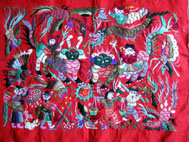 郎德上寨之做客苗家 跨进她家的客厅,看到了不少精良的绣品和其它民族性的东东,让我爱不适手。我坐在那里与她闲聊。她说这些绣品,她们这一代中年人已经绣不出来了,只有老人才能绣出来。她们绣的话,出来的效果定然是很毛糙的,孩子们已经不学了。这些都是比较有收藏意义的,其中有不少都是她们的奶奶年少时的绣品流传下来的,买一个就少一个了。绣一个这么大(约50cm*30cm) | |