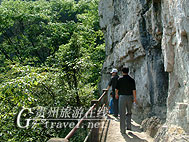 绿绿,煞是好看,可我却叫不出它们的名字。味道不错,价钱也挺便宜。陈先生用有些生硬的普通话惋惜地说:“可惜这些菜呀,真是养在深闺没人知。如果上了星级酒店,那它们就是珍品了啊!” 最后一道特色菜上来时,主人介绍说这叫“人咬狗”。我一听就忍不住头皮开始发麻。我知道在农村很多这种植物,看起来翠绿欲滴的样子,但如果你从它身边经过不小心“非礼”了它,它会毫不客气地“吻”上你一口,让你疼得眼泪直流。我小时候就被它“吻”过多次,对于它的“无礼”到现在还耿耿于怀。没想到,今天它居然被变成嘴里的珍肴了。虽然我有了“一雪旧恨”的机会,可还是踌躇着半晌不敢动筷。谢总他们对这个新奇的菜也很感兴趣,却不知道怎么享用,都把目光对着我。我想,如果我再不动筷,客人还会以为这菜有问题哩。罢了,舍命陪君子吧。我闭上眼睛,慷慨就义般尝了一口,味道还真鲜!几个客人见我的馋样,立即举起筷子风卷残云般消灭了它。而我则悄悄放下筷子,它带给我的威力其实一直让我心有余悸,罢了,还是让它们把体内的余香留给勇敢的客人吧。 下午,我们一行来到白沙井休闲。走在悬空而挂摇摇摆摆的铁索桥上,看下面河滩上的红男绿女或对坐品味小吃,或三