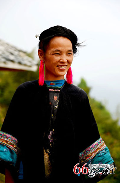 加鸠的苗族妇女有一个很特别的耳饰,她们的耳环是红色的毛线,就像一缕流苏,自然的飘洒在双肩,格外的惹眼。