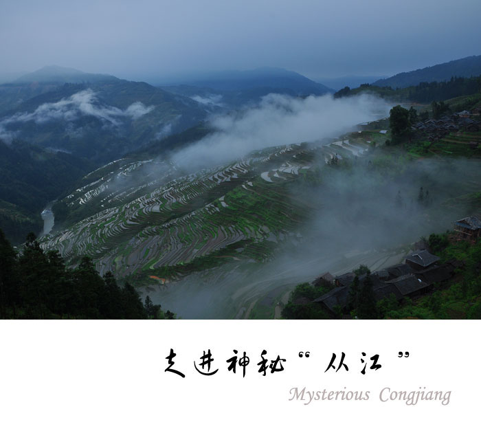 清晨,湿润的雾霭,遮掩着加榜梯田的娇容,缝隙中我们能看见它多姿的神韵,看见月亮山雄壮的身躯。一条七彩的朝霞披在肩上,加榜梯田顿时楚楚生辉,焕发出无穷生机,这一切和谐的画面将远来的游人从容的融在其间。