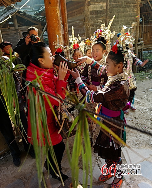 沿并不太宽敞的街道一路走去,寨子很静,偶有几声鸡鸣狗吠,路边,有的村民在晾晒青菜、侗布,有的小孩在玩耍,跳皮筋,滚铁圈,几个耄耋老人在晒着太阳、抽烟,有的在溪沟里浣纱......一切都是那样随心所欲,那样自由自在。再往前走,来到鼓楼前的空地上,轻雾还没有散去,加上炊烟的渲染,阳光照射在鼓楼上,被鼓楼的檐角分割成一绺绺光柱斜射下来,给鼓楼蒙上了一层朦胧而又神秘的光影。十几个身着盛装的侗族小姑娘在鼓楼前一字排开,清脆悦耳的童声侗族大歌在轻雾笼罩的鼓楼前唱响,那声音有如百灵鸟的欢叫,那头上的银饰在侧逆光的照射下银光闪闪,那逆光投射的身影形成了美丽的剪影。我是比较喜欢这样的“光影”的,虽然正面没有给辅助光,人的面部稍暗了些,但并不影响整体画面效果。