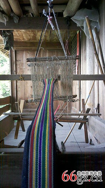 织布机,可以织出细细密密的“花椒布”(当地的手工布,因有小小的似花椒的暗纹,故名),也可以织出装饰服饰的花带。