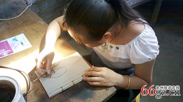 走进乡里妇女们自己成立的蜡染协会时,屋外的阳光让屋子里的光线看起来不是那么明亮,很简陋的房间里,年轻的女子正在专注的画着蜡样。并不宽敞的桌台,空气里有淡淡的“蜡”的味道,说不上难闻,但也许并不是好闻。