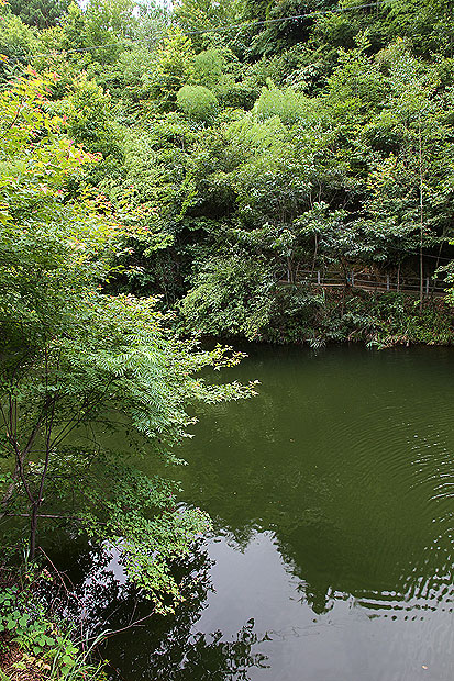 山谷间一潭碧水,郁郁葱葱的植物,消去夏日的暑气,一片清凉在眼在心尖。