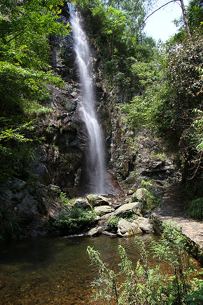 走过小桥,顺着水边的山道向谷内走去,茂盛的植物彻底的遮去炎热,若有若无的流水声和夏虫的声响,让心也清凉下来。