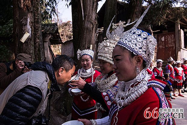 初春时节,随摄友在台江县境内游历数日,返程途中不经意沿公路岔进了一个村寨,抬眼见一片撑天古树下色彩艳丽,好像有客来正摆着拦门酒。摄影人天性使然便停了下来。