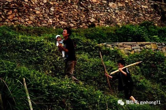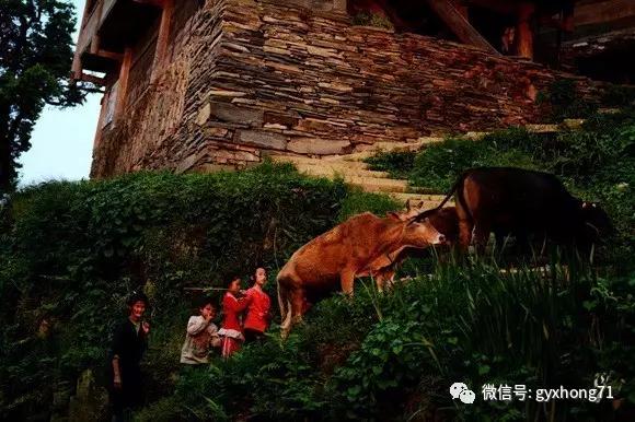 同行的摄友们一直在不停地拍摄玩蜥蜴的孩童。我换上长焦,开始“扫描”寨子。我发现,公路上方山上的一处院坝边上,正坐着四五个人,一些木楼的窗户边也不时的伸出头来,观看着路边的一群摄影人和孩子们,再往下走,收工的村民们也陆续回家了,有挑着柴草的、有牵着牛的、有抱着孩子的,从年龄上看,他们都正当年,应该是这些孩童的父母,看来,孩子们未必都是“留守”,而这座村庄里,未必都是妇女老人和孩子。