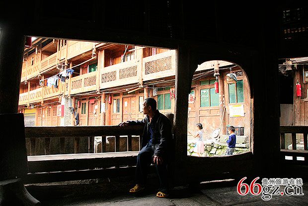 鼓楼底层中间四柱连木成凳,围成方形火塘,外边围四周也置长条凳供人休憩。楼上有鼓,需搬梯而上才得以敲响。凡有重大事宜商议、抵御外侮、突发应急等,由寨中头人击鼓号召全寨族人聚会。无事不得随便登楼击鼓,违规则几担稻谷处罚,询过一位老人说大家历来遵守,尚未有处罚事发生。侗寨建于四面高山的山谷中,只有在“欲与天空试比高”的鼓楼里击鼓才会“居高声自远”,便于及时召集族人议事,这更体现着鼓楼的独特功能性了。