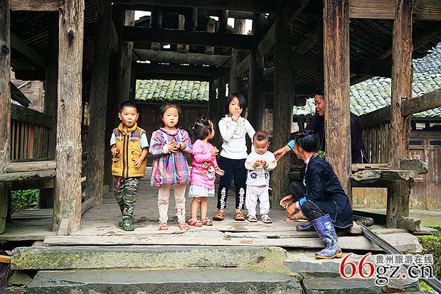 侗人喜欢住水边,自然少不了架桥通行。跨水长木平卧搭桥,桥上建廊屋可避风雨,故称“风雨桥”。坐在两排座椅上,可谈天说地也可凭栏观赏美景。桥屋顶用悬山形式,桥墩位置上做成四面形宝盖再攒尖宝顶。