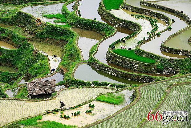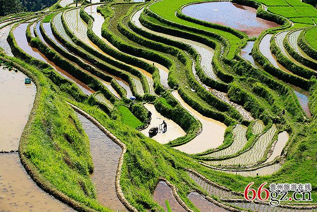 加鸠镇加水村山高谷深,苗寨依山而建,绿荫环绕。寨脚梯田缓坡向下延伸,规模宏大,谷涧云雾润涌轻抚,更显气势不凡,蔚为壮观。