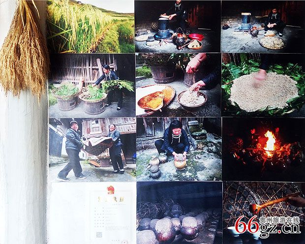 取材当地香糯,蒸熟后散到簸箕上放凉,用传统制法酒曲粉跟糯米饭拌匀,再倒入酒篓盘里铺开,盖上青草和草席保温。一天左右糯米饭发酵滴液,三五天后移到大酒缸浸泡发酵几天,酒液由甜味稍变辛辣便可倒进酒坛。用粽粑叶包好酒坛口,搬到火塘边煨烤,用麻栗树、茶籽壳、芝麻杆、樟脑根等植物烧火来煨。连续煨烤十多个小时,火力不宜过旺,坛里的酒沸腾到坛子外面,周围变成膏壳后就可移出冷却。取稻田泥巴拌柴火灰把坛口的粽粑叶糊好,搬到三楼的火烟口继续熏几年。存放两年以上便可以饮用,存放的时间越长酒质越好,一般超过二十年以上酒质也会逐渐变差。
