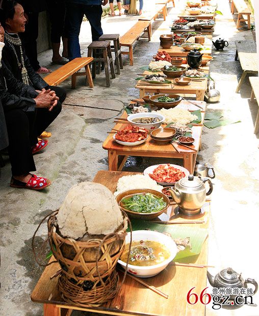 这次长桌宴上,壮家兄弟特地开坛煨酒,倒在大盆子里,用专用的瘦长瓢勺分酒,芳香四溢,蜜甜清爽,喝个两大碗还真不过瘾。