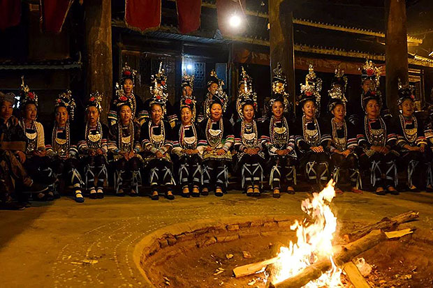 这样的歌不像小黄齐声共鸣的侗族大歌,如果说侗族大歌是清泉闪亮萦绕苍穹,那么这样的歌却是人间的私话和告白,会听得心醉,听得眼里含情。歌声停止,心还在深情的旋律里游荡,半晌才回过神来。虽然听不懂,但无须懂,便可以感受到歌声里的情意。我想,如果我有曼妙的舞姿,我多想和着歌声翩然起舞,抚弄清影。但是,在这里任何的附庸风雅,任何的肢体语言都是多余,唯有静静地聆听,如痴如醉。