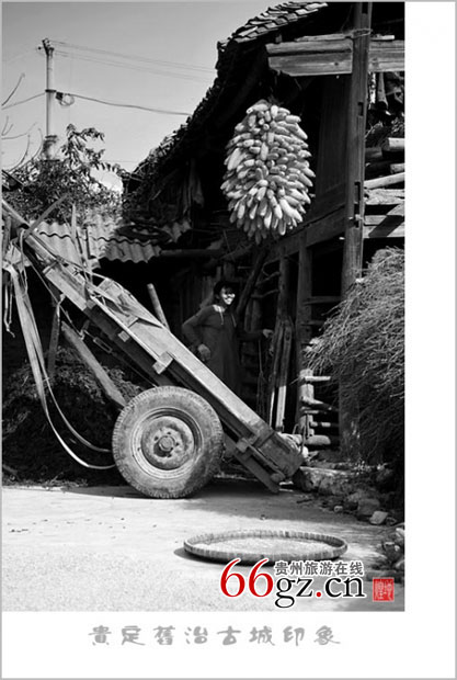 城外,一条大河弯弯曲曲延绵包围着旧治古城,全长约十公里,河面上架有一座十一孔的大桥名为“郎家桥”,桥下有一排石礅穿河而过,名为“安家礅”。据说,明万历年间,古城老住户有“安”“郎”两家大姓,人称“安半街”“郎半城”,以前从古城外出都要摆渡,安家为方便镇上人外出,出钱在河中修建了148颗过河石礅,几年后,朗家后代不少人做了官,便也出资修建了现在的这座大桥,大桥宽约十米,长约几百米,中间有十一孔,这样的大桥,在贵州省内都是罕见的,可见当时的工程巨大,老人说桥头立有功德碑,但在破四旧的时候,被撬来修路了。大桥两边护栏原本都雕刻有一些石兽,也被砸毁了,由于大桥的坚实,仍然是现在旧治与外界唯一的车辆通道。
