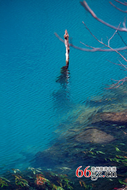 小七孔景区属喀斯特地貌区,由于冬季水小,水的流动较为舒缓,一些小水塘的水几乎处于一种静止状态,喀斯特地貌所含的各种矿物质,经过水的分解氧化混合后融入水体,使相对静止水体的颜色呈现出宝蓝色。