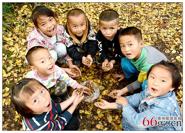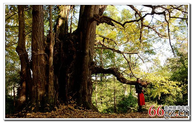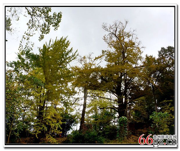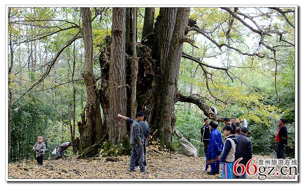 生长在贵州省惠水县摆金镇摆够苗寨的千年银杏树群,在五十平方范围内,聚生着五棵古银杏树(一雄四雌),实属罕见。