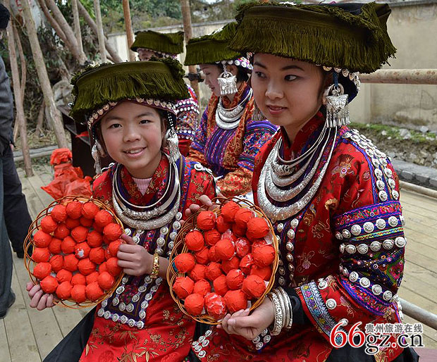 农历“二月二”,汉族人称为“龙抬头”,并说这一天是龙的日子。而在苗家,我们对于“二月二”不是这样诠释的。在黔东南的苗族多是将它称作“祭桥节”或“敬桥节”。 苗族有架桥求子的习俗。每年农历二月二日是苗族的敬桥节,也叫祭桥节。黔东南的苗族有个传说:在遥远的年代,一对老夫妻没有儿女。有一天,一只燕子告诉他们,我看见你们的儿子从东方来了,波浪涛涛无法过河,要架一座过往的桥,娃娃就会到你们家来。他们听从了燕子的话,造了桥,儿子真的走过来了。对于架桥,苗族的古俗要砍三棵杉树架桥,因为民间存在着男单女双的观念,单数象征男孩;杉树枝叶繁茂,象征多子多孙的吉祥。正因为如此,“苗家代代传,每逢二月二,家家来架桥,户户来祭桥”。因为架桥可以生子,所以人们敬桥、祭桥。贞丰的苗族将“二月二”节扩大了内涵,除了叫“敬桥节”外,又称其为“新娘节”、“走亲节”,节日内容更加丰富了。
