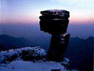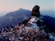 往山顶蘑菇石处去,远远地便望见两个人影在晃动,近前一看,原来是铜仁师专的谢老师和他的一位公安朋友。谢老师比我先到一天,但大雾弥漫,什么也看不见,什么也拍不着。