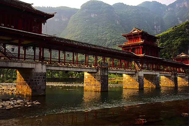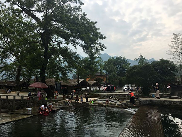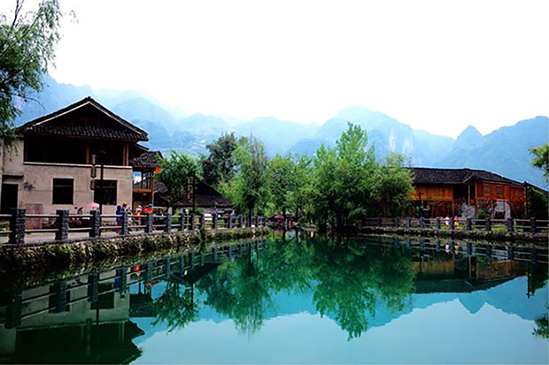 进入景区,映入眼帘的是悬浮在水中的木栈道,古老的水车在神龙河畔静静地数着历史的年轮,清洌洌的河水绕着土家寨子流出了世界最短的河,流出了云舍的轮廓。