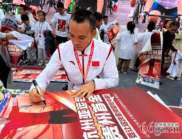 11月4日,贵州省玉屏县迎来2023第七届“多彩贵州”自行车联赛总决赛(玉屏站)暨第七届贵州玉屏“相约茶花泉”山地自行车赛(简称自行车联赛)鸣笛开赛,这是骑手们期盼已久的年终总决赛,来自全国各地自行车队的1065名参赛选手,朝气蓬勃、激情四射,尽享骑行之乐;贵阳一中英语教师安勇一家人前来参加比赛,杭州亚运会贵州冠军米久江在现场签赠海报和体恤衫,掀起一阵热潮。省内外主流媒体记者们忙碌在现场,到处可见媒体“黄”。