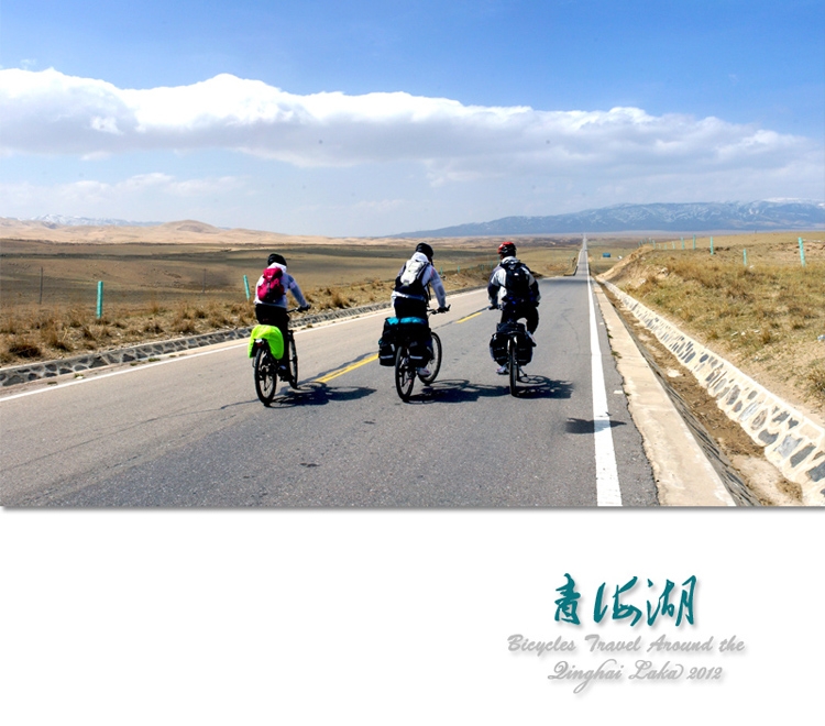 1号早晨的天气还有点阴冷,到9点来钟,天空放晴,心情也随天空明亮起了。第一次亲临青藏高原的两车友,兴奋不已,顺着通向天边的的路开始了我们的环湖骑行。