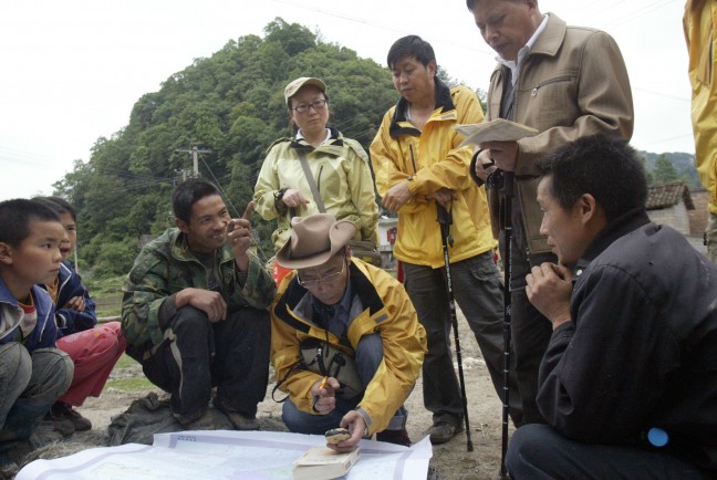 在完成广西南丹方向的地名确认后,考察队5月2日从广西六寨来到黔、桂两省交界处的尧益村。在当地村民的带领下,全体考察队员和随行专家从广西方向进入贵州境内,徐霞客当年经过此地所记录的里程、山形地貌、古道、溶洞及河流走向一一精准地展现出来。虽然经过了371年的苍桑岁月,当地的地貌特征和生态环境与徐霞客时期基本相同。