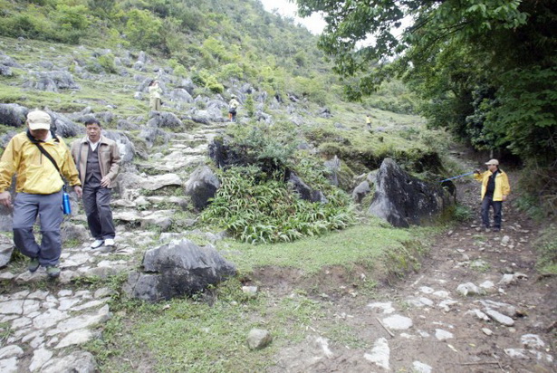 村里的人谁都不知道徐霞客,听说我们来考察古道,十几个村民自告奋勇带我们来到村后不远的两省分界处。