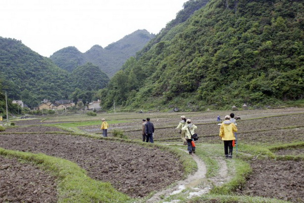 “四月八,冻死老母鸭。”当地壮族民谣还说得有几分准,今天正好是农历四月初八,清早起来雨中的六寨镇还有几分寒意。司机去南丹县城接徐所长,我则带着助手来到离六寨1公里外的姊妹峰下考察。