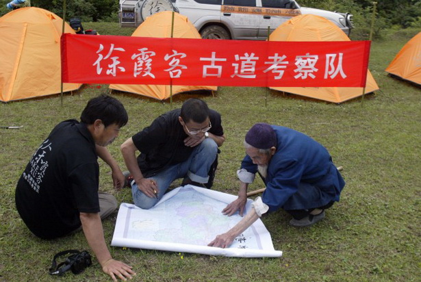 医生王丽姝平时话语不多,总是任劳任怨为团队效力。任卫丽是个重量级的驴友,每天不知疲倦地跑前跑后为大家拍摄考察资料。退休教师曾兴富是个典型的徐霞客粉丝,成天拿着本<<徐霞客游记>>沿途找参照物,考察起来的那份认真劲,就像风水先生在四处看风水。而老警官谢琼,虽然名字像女人,却是个堂堂的男子汉,无论队里的粗活细活总抢着干。