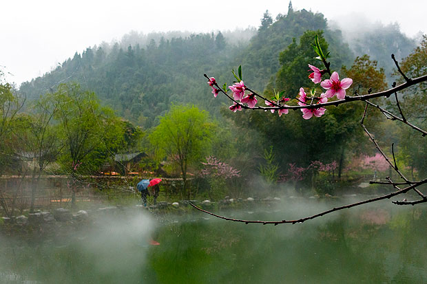 细雨断断续续、勤勤恳恳的下了两天,来到桃花源时,依旧伴随着我们。我倒是开始习惯并享受起来。转念想想,也许别人还欣赏不到细雨中的桃花源景致呢,笑意渐渐浮上心头......