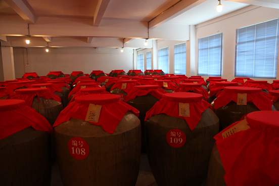 谈笑间,车队已到达据说空气中都是酒分子的茅台故里,拐了几个弯后进入一座厂房,一个并不显眼的牌子标明这里是“国酒香专属烟叶醇化库”。贵州中烟原料部工作人员透露,国酒香烟叶要经历多次醇化最终完成四次“援酒入烟”,这里是其中一个“二次醇化库”,一般不对外开放,于是有人打趣到“这是专属于赢家的福利”。正式进入醇化库,扑鼻而来的茅台酒香着实让大伙惊奇了一把。穿过一排排装着各地烟叶的大纸箱,讲解员一边科普“卷烟也是有配方的,需要不同部位和区域烟叶配伍才能形成稳定的品质和丰富的风格”,一边走向醇化库深处,上百个硕大的盖着红布包裹严实的酒坛整齐的排列在大家面前。盛放过数十年茅台酒的酒坛,从里到外都还溢着酒香,但在这里存放的却已不是酒,而是国酒香的烟叶。