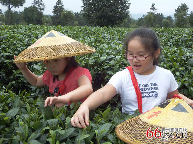翌日,清早。游客达到湄潭永兴镇——“中国茶海”。这里是茶的绿色海洋,一望无际的茶浪一波一波地涌向天际,令人叹为观止。这里拥有目前国内最大的连片茶园,达到六万多亩。这是茶之秘境,空气里弥漫着茶的香氛,每一滴露珠都是茶的精灵,身临其中,沁人心脾,令人陶醉。来到这里,仿佛来到了唐朝诗人笔下所描绘的“野泉烟火白云间,坐饮香茶爱此山。岩下维舟不忍去,青溪流水暮潺潺。”的意境。这让久居城市的人们,欢颜尽展,愁眉尽舒,如脱兔一般地自由奔走。孩子们兴奋的尖叫声在山野间随风飘荡,他们蹲在地上采集着小花小草,和父母们玩狗尾巴草拔河的游戏。人在这里变得多么的单纯……