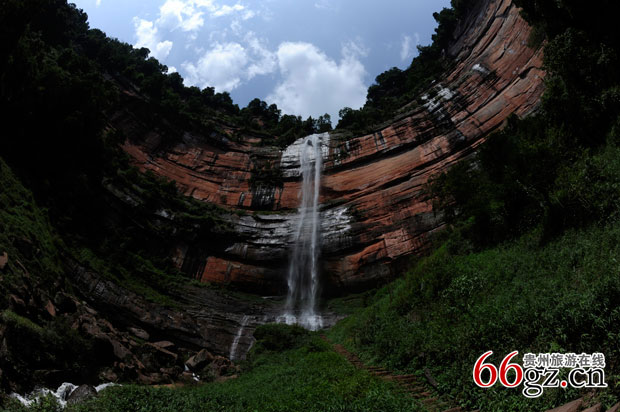 “丹霞”是指我国南方红色岩系发育的一种特殊地貌特征。是地壳经过漫长的上升运动、岩层节理变化、以及雨水河流的冲刷而逐步形成的,具有独特的红色地貌景观。由于这种地貌最先是在广东省仁化县的丹霞山进行研考的,故将这种地貌称之为“丹霞地貌”。贵州省西北部赤水市境内以侏罗、白垩纪出露地面层中,有1000多平方公里鲜红的丹霞赤壁峡谷,仪态万千的奇山异石,巨大的岩廊洞穴而著称于世。2010年8月,贵州赤水和湖南莨山、广东丹霞山、福建泰宁、江西龙虎山、浙江江郎山共同以《中国丹霞》申报世界遗产成功。