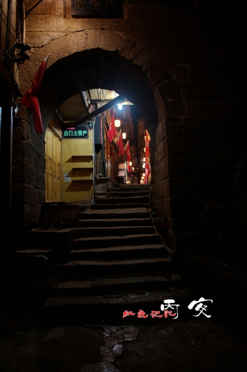 晚餐过后,天已黑尽,探访古镇的激情催促着我们加快脚步向古镇走去。