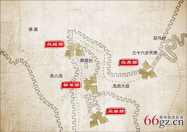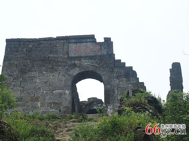 顺着林荫遮蔽的山路不一会就到了“飞龙关”,这就是在对面山头就可以看见的关隘,也是最有气势的关隘之一。