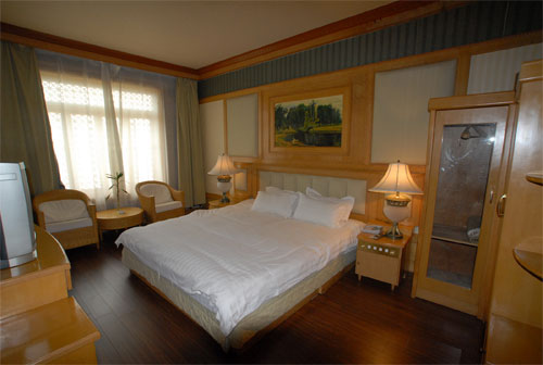 宾馆内设客房100间,250个床位,其中标准间50间,单人间6间,套房3间,三人间23间,供普通会议用的四人间、五人间共18间;餐厅12间,其中包房9间,供200人用餐的宴会厅1间;中型餐厅2间;会议室3间,其中供250人会议厅1间,供20至30人会议厅2间;同时设有美容美发厅、咖啡厅、台球室、棋牌室和卡拉ok厅。有3000平方米面积的停车场和室外活动场地。