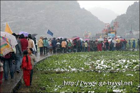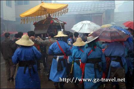 由每家每户出资放鞭炮迎汪公,鞭炮声是不间断的。