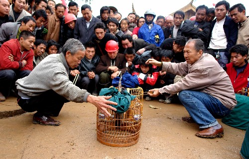 “画眉节”上的画眉鸟比赛吸引了众多观众的目光。