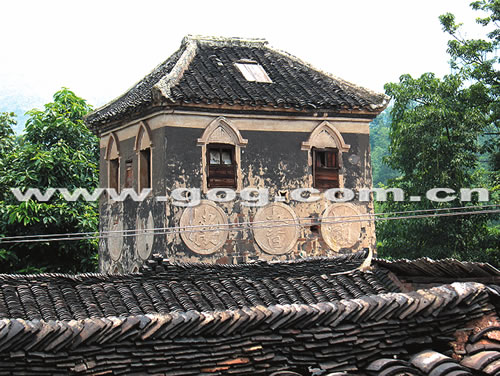 虽说这座古建筑是以欧式、日式建筑风格为主,但记者从中还是看出了不少中国元素。在建筑群中,一栋高4层的楼房显得特别突出,楼体的四周,均写有“读书楼”几个大字。据称,这是袁氏家族的子孙们读书的地方。在西式的楼台、窗户上,不难发现有雕刻的“耕读渔樵”、“梅兰菊竹”、“福禄寿禧”等图案。而在院门上,还写有“讲信修睦”等大字。