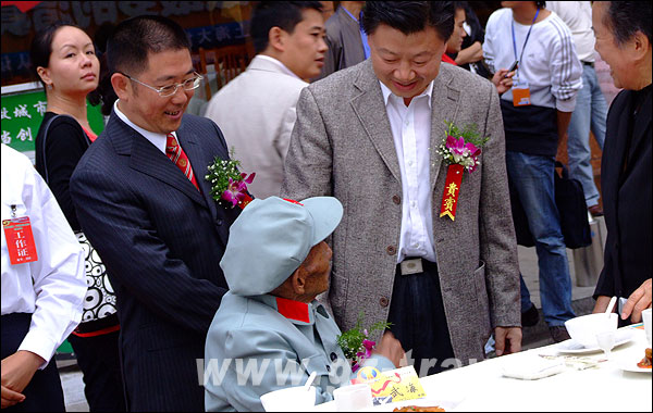 贵州省政协副主席陈海峰与参加本次活动的老红军握手